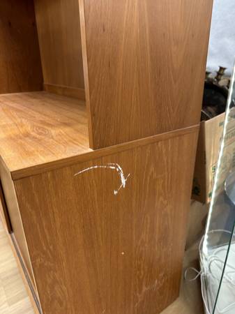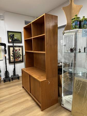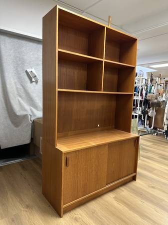 Teak Veneer Large Bookcase. 4 Open Shelves & Cabinet. - furniture -...