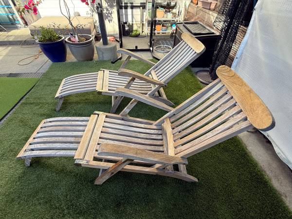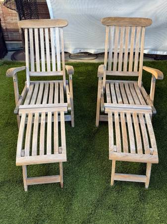 Teak wood outdoor / patio recliner lounge steamer chair. Reclines in multiple settings. Heavy teak wood. Very well made. These would retail for $800+ each! Selling for $200 each or both for $375. I...
