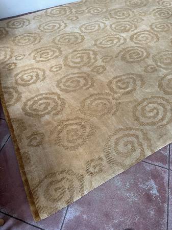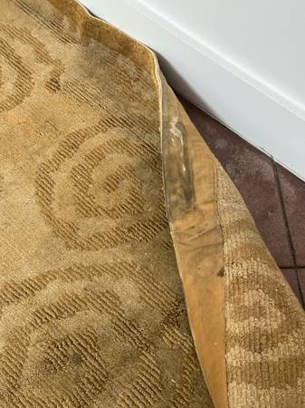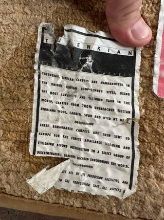 Tibetan rug. Hand knotted in Nepal. This rug came from and estate in San Francisco. It had a water stain on one side. Needs professional cleaning. Size: 105” x 136” $100 #design #classics #forsale...