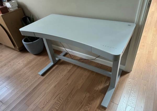 Purchased at Costco a couple years ago. Approximately 47.5”x24” glass top. In excellent shape - no issues or major damages. Really only used for a year, then I took a break from working.