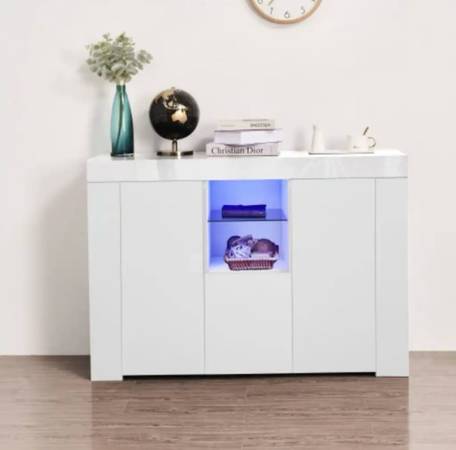 This utility 2 doors sideboard storage cabinet with open 2 tiers of cubby space, drawer, and concealed shelves designed to store household units, space utilization, and prevent just multipurpose LED Kitchen Cupboard Storage Buffet: the sideboard with multi-color LED lights, 16 kinds of monochrome, and 4 kinds of color change can change the color of the display through the remote control.Modern Wood High Gloss Sideboard: this wooden sideboard is made of 16mm E1 particleboard, the LED unit cupboard cabinet is a high gloss effect finish to the front of the unit (including doors and front panels); the rest of the body in a matt finish, contemporary and stylish multifunctional Sideboard Storage Cabinet for Home: this utility LED unit storage cabinet is the best choice for living room, bedroom, hallway, small dinette, also could be used as tv stand table, office tea room cabinetAssemble Needed: this utility sideboard required to put together, the installation instruction will come with the parcel, the sideboard will dispatch with 2 parcels, stylish for any apartment, office decoration.