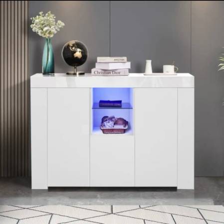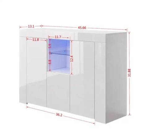 This utility 2 doors sideboard storage cabinet with open 2 tiers of cubby space, drawer, and concealed shelves designed to store household units, space utilization, and prevent just multipurpose LED Kitchen Cupboard Storage Buffet: the sideboard with multi-color LED lights, 16 kinds of monochrome, and 4 kinds of color change can change the color of the display through the remote control.Modern Wood High Gloss Sideboard: this wooden sideboard is made of 16mm E1 particleboard, the LED unit cupboard cabinet is a high gloss effect finish to the front of the unit (including doors and front panels); the rest of the body in a matt finish, contemporary and stylish multifunctional Sideboard Storage Cabinet for Home: this utility LED unit storage cabinet is the best choice for living room, bedroom, hallway, small dinette, also could be used as tv stand table, office tea room cabinetAssemble Needed: this utility sideboard required to put together, the installation instruction will come with the parcel, the sideboard will dispatch with 2 parcels, stylish for any apartment, office decoration.