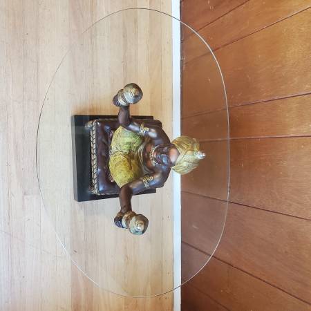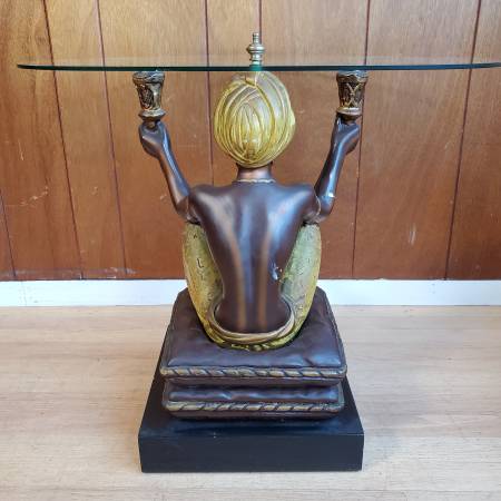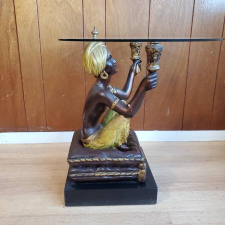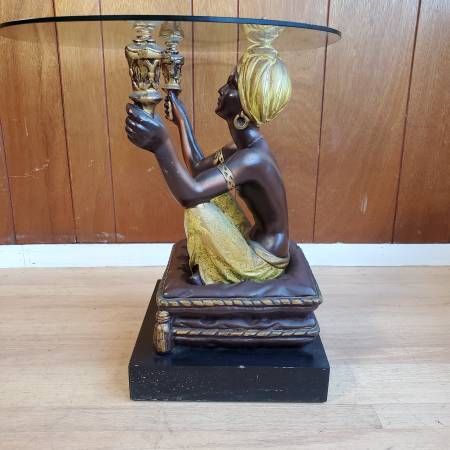 Vintage 1950's Blackamoor Clear Glass Top Ceramic Statue End Table