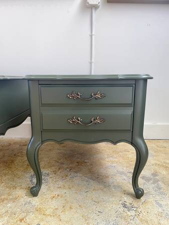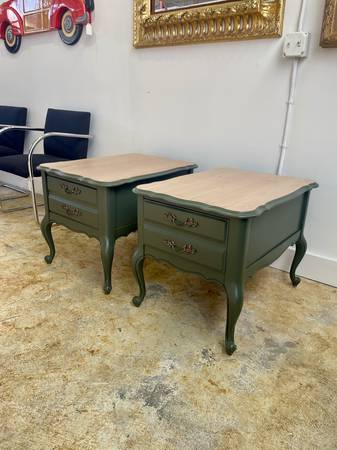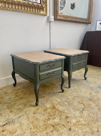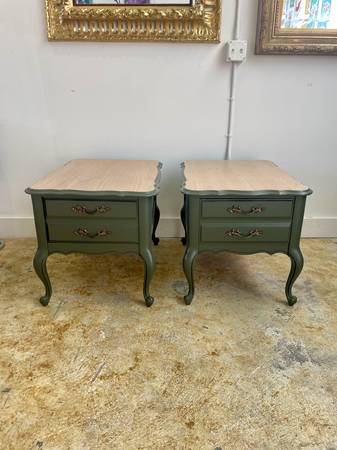 Vintage French Provincial Green Walnut Nightstand/Sidetable Dimensions: 22.5"W x 30.5”D x 22”H