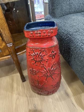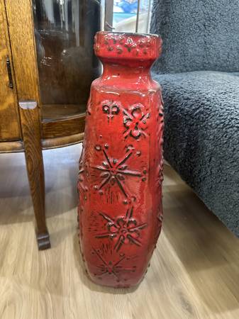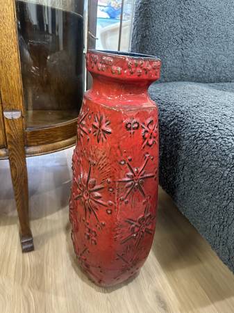 Vintage German Floor Vase Red Measurements: 6.5 "Base x 21”H