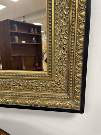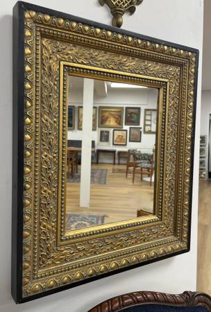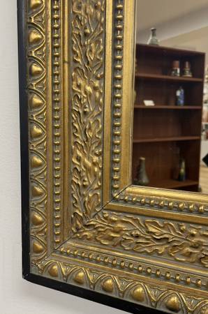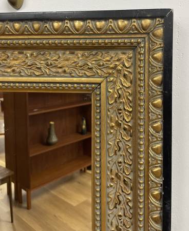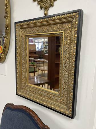 Vintage Gold Gilt Black Framed Rectangular Mirror Measurements: 19.5”W x 23.5”L