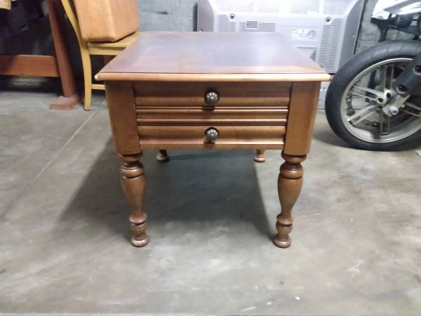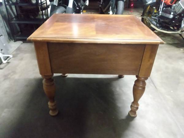 Beautiful Mid Century Vintage Lane Solid Wood End Table Night Stand In Good To Very Good Condition. Dovetail Joinery. Measurements are 24 inches across, 28 inches in depth, and 24 inches in height.