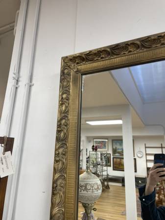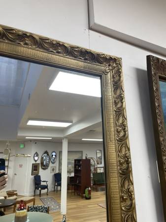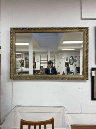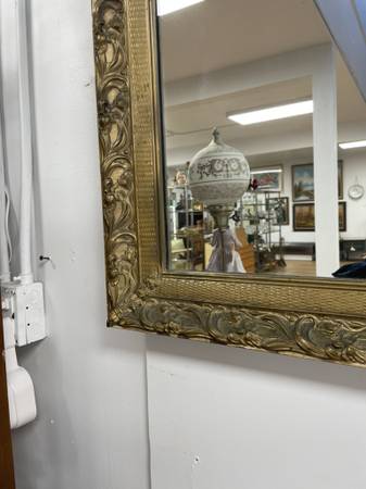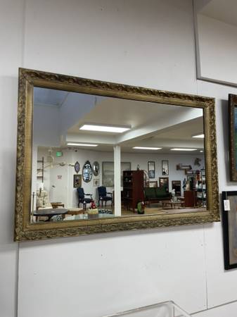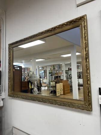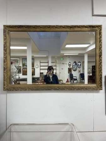 Vintage Large Gold Gilt Beveled Mirror. Sold as Found. Measurements: 54"W x 35.5"L