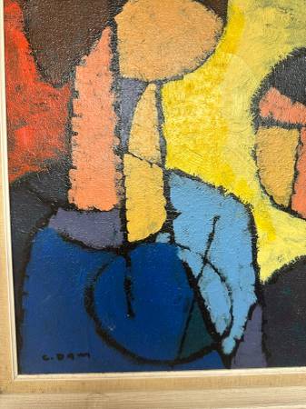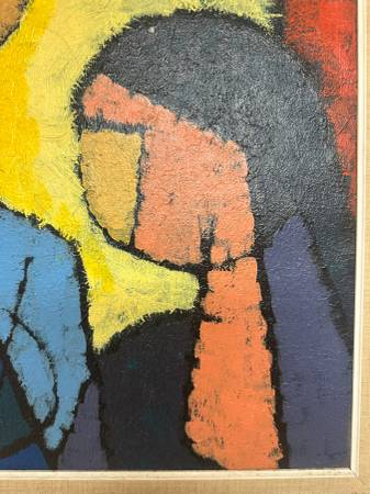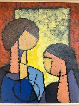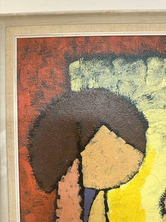 Vintage Mcm Abstract Painting of Man & Woman - Signed by Artist Measurements: 21.75”W x 17.75”L
