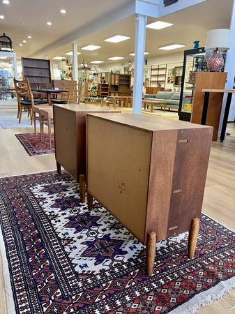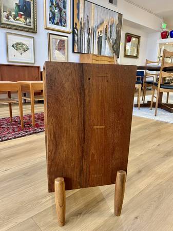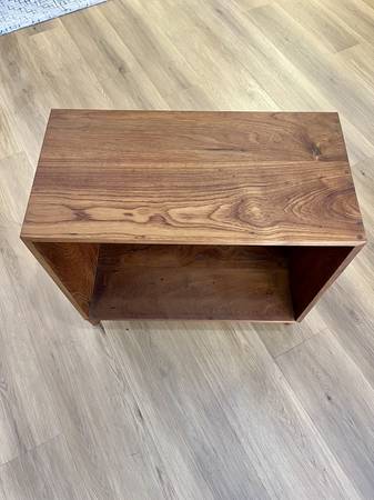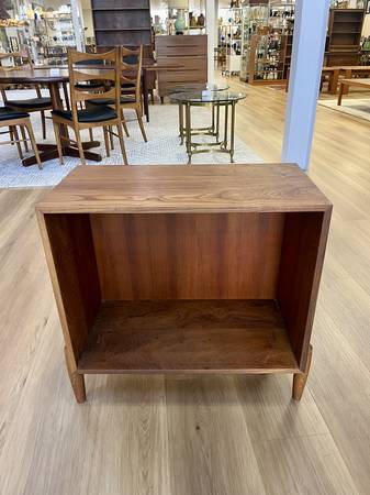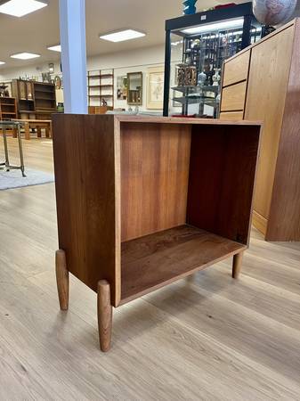 Vintage Mid Century Teak Open Record Cabinet/Side Table Two available, sold separately. Price listed is for one side table Dimensions: 28”W x 13.5"D × 26.25"H