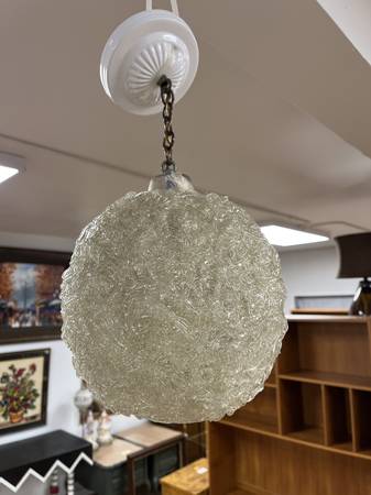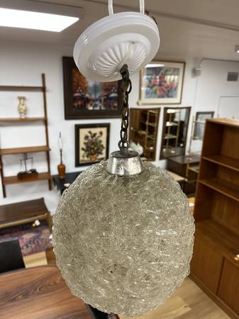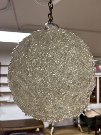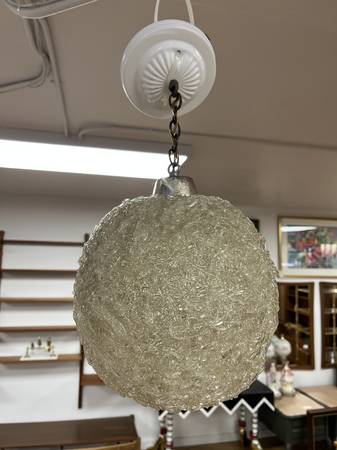 Vintage Mid Century Lucite White Spaghetti Ceiling Pendant Lamp Measurements: 10”W x 18”H
