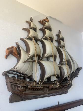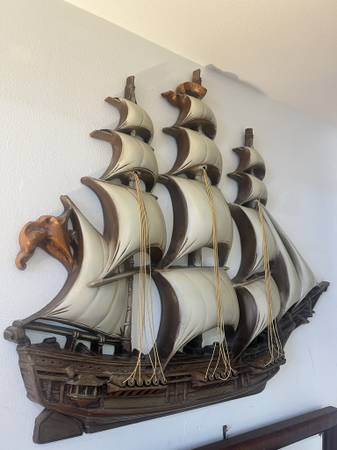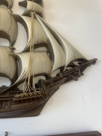 Vintage Mid Century Modern Burwood #289 Large Schooner Ship Wall Art Measurements: 29”W x 25”L