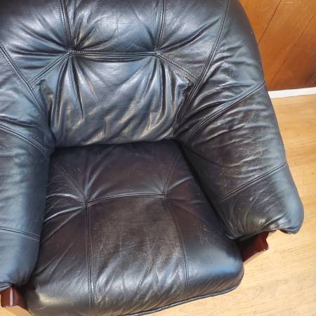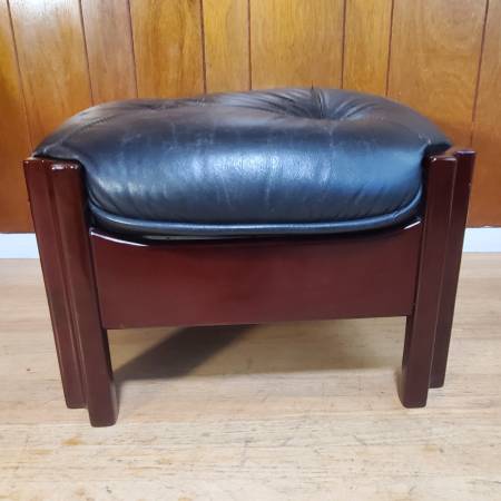 Vintage Probel Brazillian Rosewood and Black Leather Lounge Chair w/Ottoman