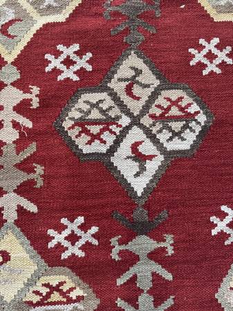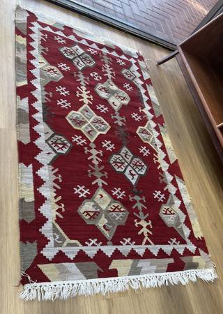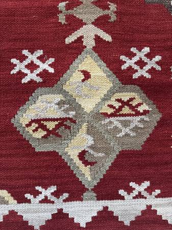 Vintage Red/Beige/Gray Turkish Kilm Rug with # Design Measurements: 63”W x 35.5”D