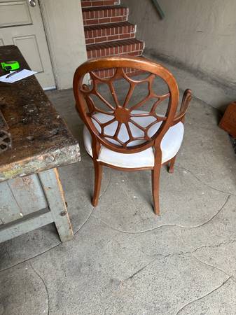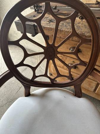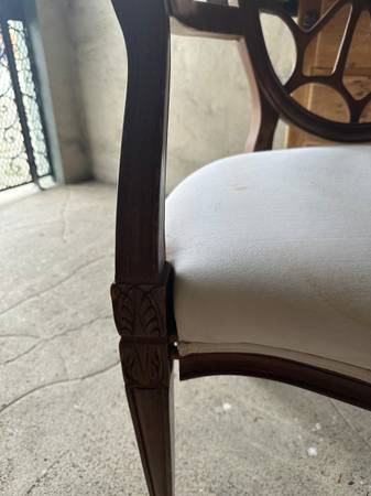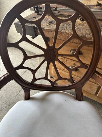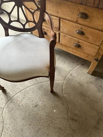 This chair has a white/cream color silk fabric. It is a bit stained. Otherwise, the chair is in great shape with a really wide comfortable seat. This was a project of mine that I was going to do in...