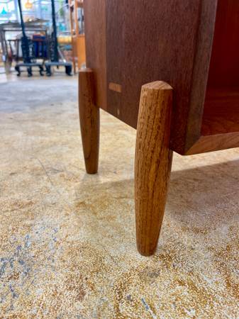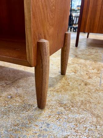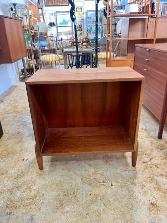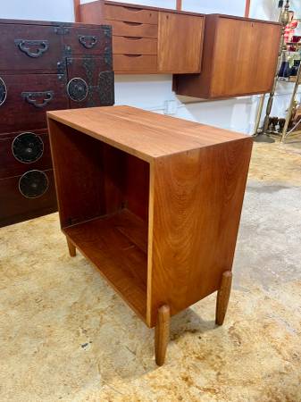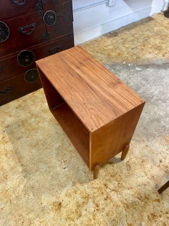 Vintage Teak Open Record Cabinet/Side Table Dimensions: 26”w x 13.5”D × 26”H