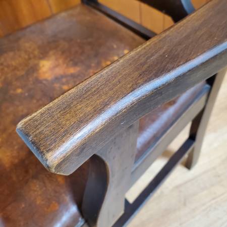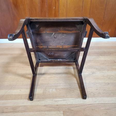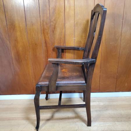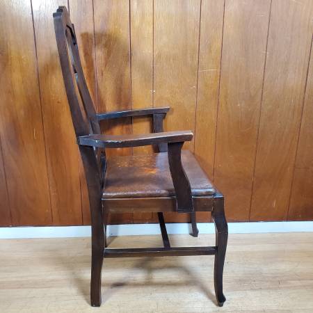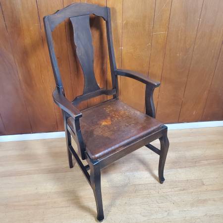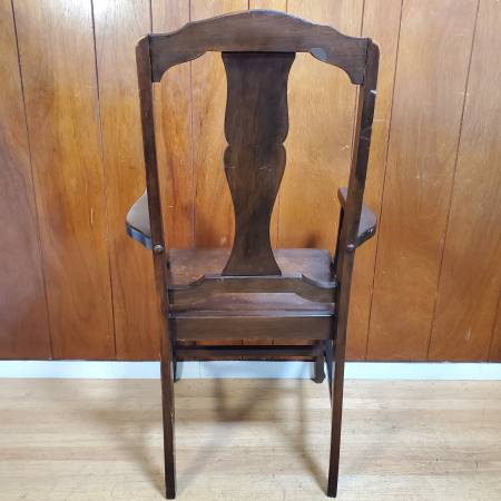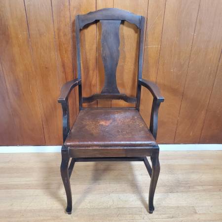 Vintage Walnut Queen Ann Back Accent Arm Chair with Leather Seat