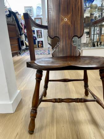 Vintage Wood Chair with Star Inlay Back. Measurements: 20.5"W x 19.5”D × 36.25”H
