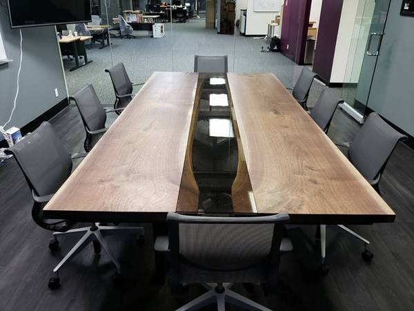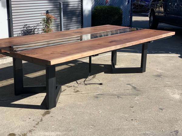 Walnut Conference table. One of a kind industrial steel base. 120x48x30 Custom sizes and designs available. Delivery and setup in the Bay Area included Custom furniture, table, conference table,...