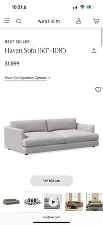 West Elm - Haven 84’’, Multi Seat Storm Grey Performance Washed Canvas