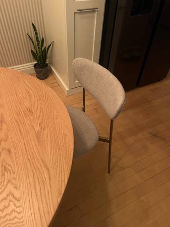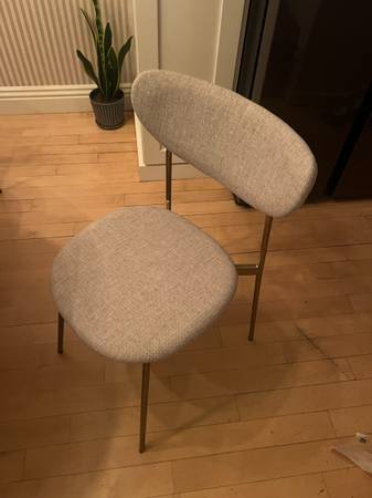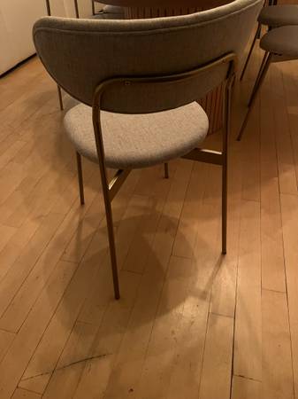 West Elm Mid Century Modern Chairs - https://www.westelm.com/products/modern-petal-upholstered-dining-chair-h4425/ . The metal part of the chair is more silver than in the link above Six total for...