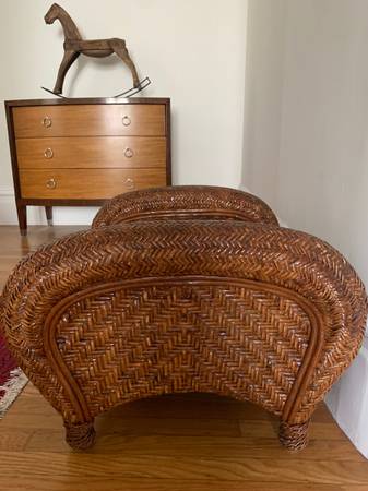 Gorgeous like new wicker seater/ottoman. 22 inch by 26 inch by 14 inch D/W/H. Please arrange your own pickup