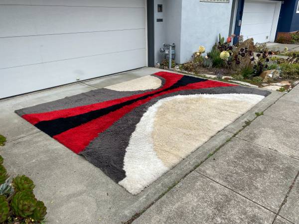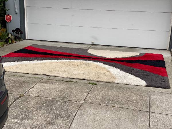 9 x 12' vintage 1980's op art shag rug in a multicolored pattern. Excellent condition.
