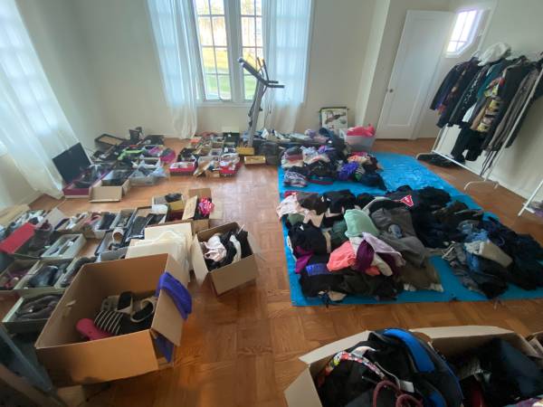 Lots of clothes, boxes of bags, lots of shoes, unused kitchenware, some brand new, funko pops, furniture, lamps, lots of random stuff for everyone! Cash preferred!