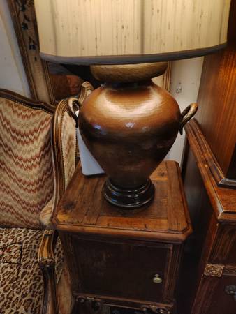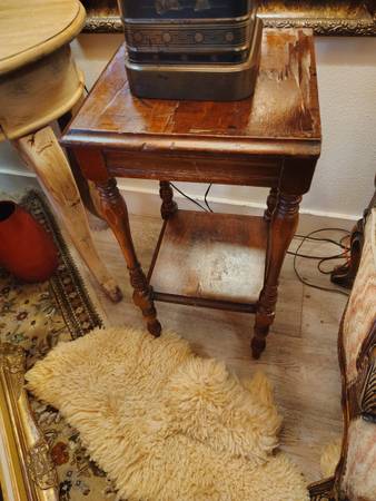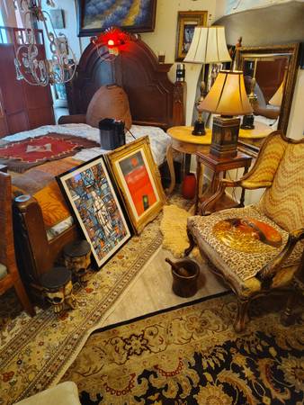 All items listed for garage sale friday & Saturday are in exceptional working order. Wooden rocking chair$45, vintage Victorian chair $45, Frederick Cooper Asian Chinoiserie tea kettle converted into lamp these lamps are selling for well over $100 each, only asking $60.wooden two level end table $20, wooden 4 leg table with drawer $50, Stiffel Hollywood Regency pineapple table lamp $90, hammered nickel and Cooper table lamp with silk shade,$50, 5 by 4 handmade navaho wool rug $70, decorative glass bowl$20, Nespresso vertio coffee espresso machine$25, vintage mortar & pestle$30, two day of the dead mini tables $40, framed engraved artwork by hishoro amana$40, abstract framed picture$20, LG Beveled Glass mirror$60, floral vintage mirror$45, sale friday & Saturday 1750 mcallister street cross street is baker text or call show contact info