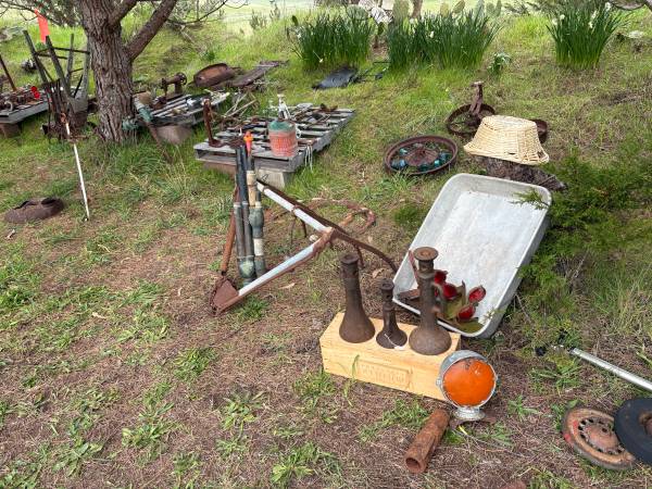 Barn Sale. Tools! The milk cans are $5.00, the rest are various prices. Please see the photos. All in photos is here today and priced to sell. Steel wheels, pulleys, gears. old kerosene cans, graniteware No wheelbarrows. There are more items available than the photos show. Near Tomales. please text for directions and times.