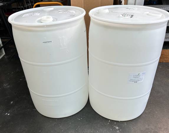 For sale 55 gallon plastic drums, previously held organic olive oil. The tops don't come off, but they all have 2 ports of access. In very good condition.