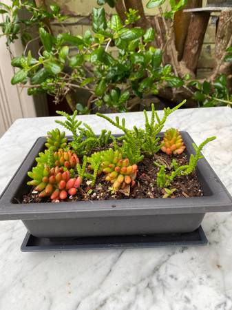 Very nice beautiful combination. 9"x6.5" pot. Indoor/outdoor👍 One of the best present ideas😊