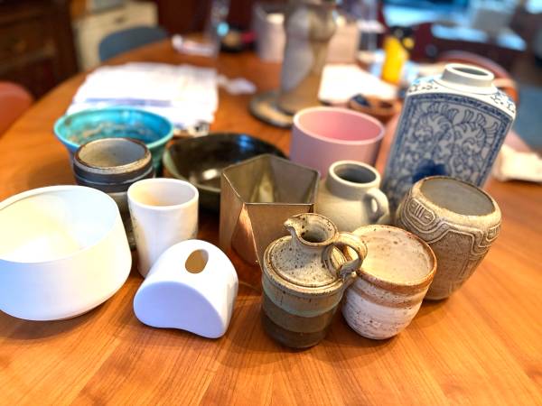 A great eclectic assortment of mostly vintage vases and pots and bowls (a few new ones too)
