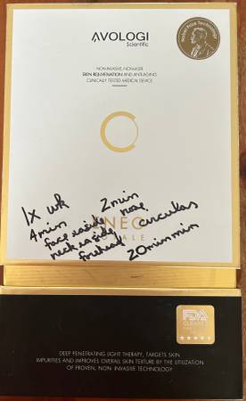 An anti-aging MEDICAL DEVICE that provides immediate and long-term skin rejuvenation results. Combines light therapy and thermal heat to better assist in the rejuvenation of the skin. A revolutionary, professional, clinically tested and dermatologist recommended device that utilizes proven technologies through an advanced applicator tip that can be used in conjunction with skin care products for better absorption.
