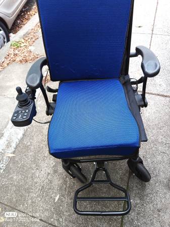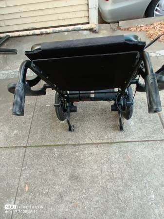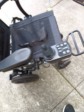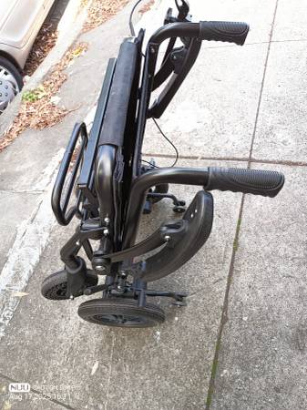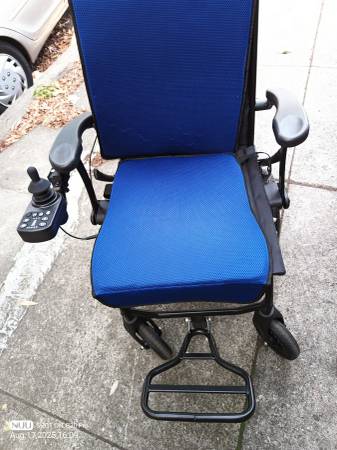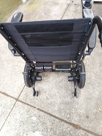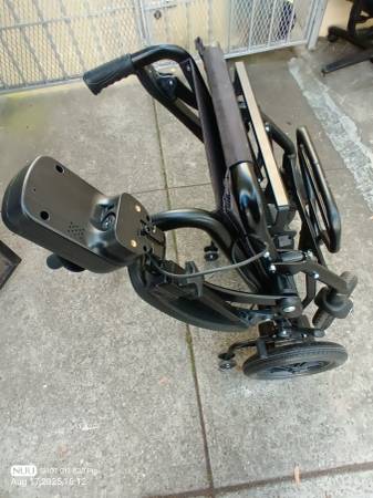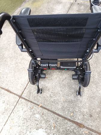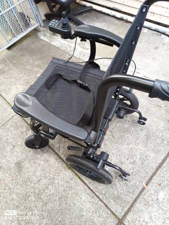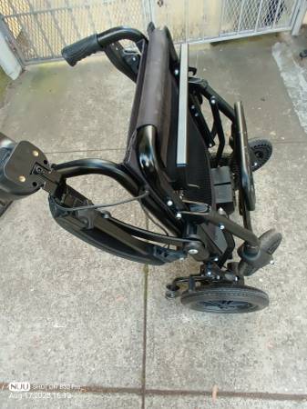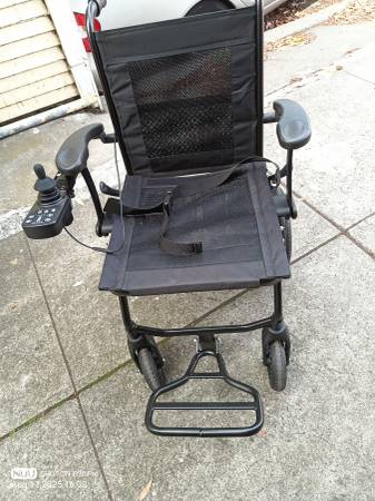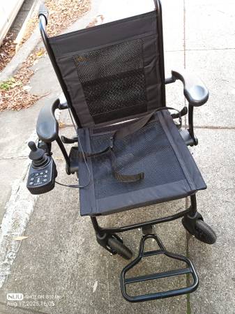 For sale: brand new, foldable, portable electric transport wheelchair with two removable batteries and airline approval.