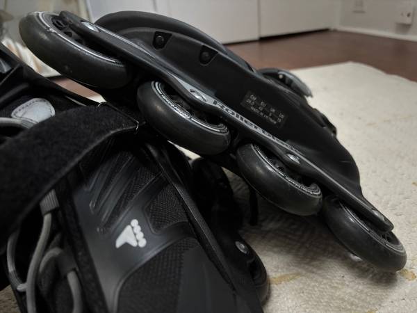 RollerBlade Sz US 10, UK 9, EU 43, CM 28.0 Inline skates by Rollerblade. No more than 90min of use. That New Skate Aroma still present! Comes with New Pair of XS Dakine Wristguards. Wheels and brake...