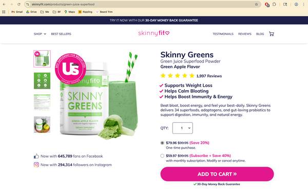 SkinnyFit 2x Skinny Greens + 2x Detox Energizing Tea Blend - health...