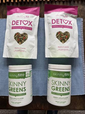 2 unopened SkinnyFit Skinny Greens + 2 unopened SkinnyFit Detox Energizing Tea Blend (Peach Flavor) Buying without a subscription would cost $280! I'm selling for $120 cash. Thanks!