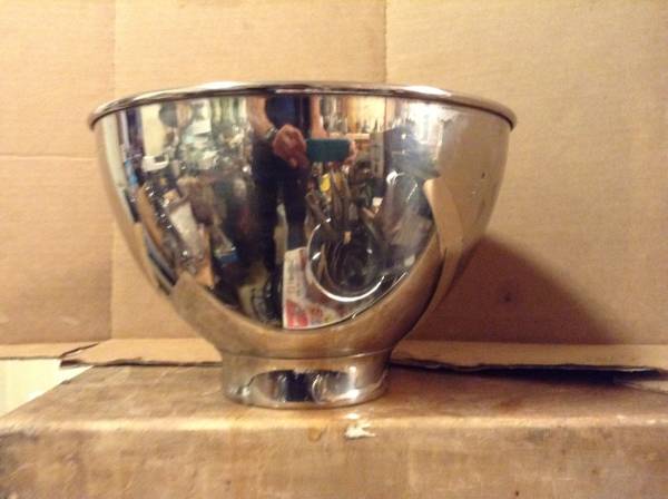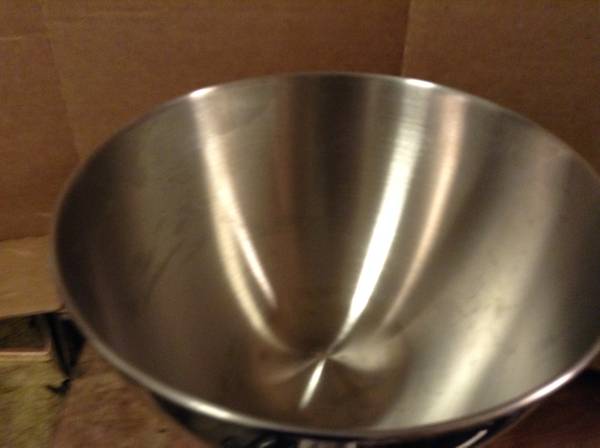 Kitchenaid Tilt Mixer 3qt stainless steel mixing bowl in superb condition! All perfect and looks like new.. when you need a smaller bowl for whipping up fluffy egg whites or creamy frostings, the 3 Quart Stainless Steel Mixing Bowl makes your KitchenAid® Tilt Head Stand Mixer* even more versatile. Enjoy clean up convenience with this dishwasher-safe bowl and store it inside other larger bowls. *Sold separately, fits models K45SS, KSM75,KSM95, KSM150PS, KSM152PS and KSM155GB .