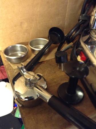 Vintage La Pavoni Europicola picola Home Lever Espresso Machine in great working condition! No leaks and works perfect! Comes complete with tamper, scoop, 2 double basket, portafilter , Boiler 200/800w 110 volts.. This is pre-Millennium model. vintage machine purchased at Thomas Cara and was serviced there when they were still open. Chrome is very nice,, though some chips as shown it photos. had faint rust on inside edges and bottom cover.(been removed).. surface can treated with epoxy paint/anti rust by new owner... Rubber base showing some wear from age,, Overall machine been used, but not much wear on pivots and portilftr contact areas.. .A bonus included with the machine is a set of 2 Danesi Italian espresso cups and 1 Can sealed Illy espresso coffee 8.8oz......Selling for $450 Price Firm! Pickup in San Francisco only! Email or call if interested! No text