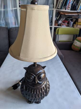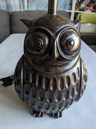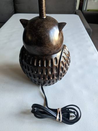 Hi. I'm selling my Beautiful 1990s Rare Hand Carved Hardwood Owl Lamp. Can be used as table, desk or bedside lamp. In great overall condition given its age. This owl lamp is gorgeous looking and will immediately elevate any light setting. Buy it now before it is gone. A truly statement piece to own. Perfect for animal lover and owl enthusiast. Dimensions: 20"H x 7"w. Selling now for $100. Cash only