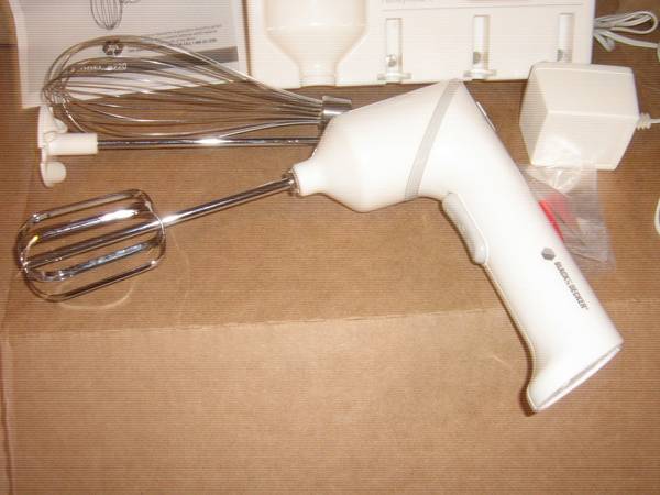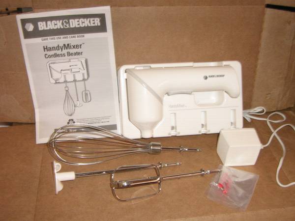 Vintage Black & Decker HandyMixer Cordless Beater 9220 in excellent condition! All perfect! Beater can twist and bend to use in 2 different positions. Has high and low speeds.. Takes a full charge and runs 30 minutes on high! All clean and ready to use! Comes with owners manual and all parts. Selling for $25 price firm! Email or call if interested Text messages don't work!