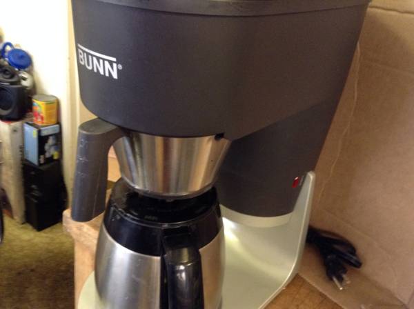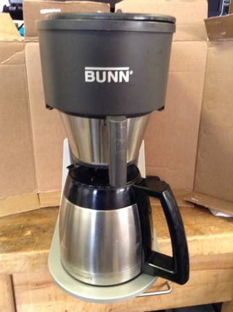 Bunn 10 STX Cup Pourover Coffee Brewer in great working condition! All clean and ready to use.. Carafe has been replace with a Cuisnart stainless carafe and works perfect.. Light normal wear under the brewer carafe area... This BUNN STX model coffee maker features a 10-cup capacity with a black and silver matte finish. It includes a thermal carafe, removable filter basket, auto shut-off, and dishwasher-safe parts, making it easy to clean. The Bunn machines feature a "pour over" method of brewing, which means that once you add additional water, the displaced, already hot water starts immediately. No waiting for heat-up. I've upgraded to an integrated machine and don't need this unit. A great, reliable machine.