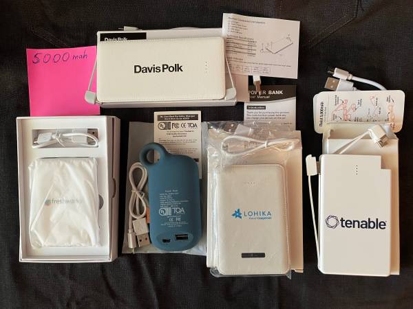 Brand new, many in original box. Various sizes, from 5000 mah to 10000 mah. Corporate branded. Feel free to email me for a specific size or color since not all are pictured.