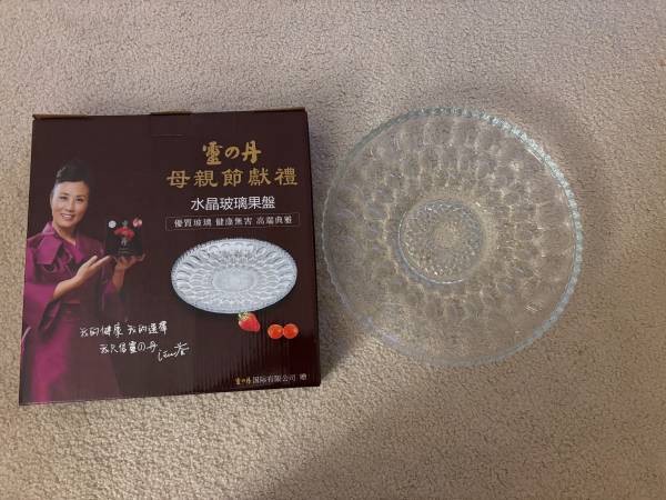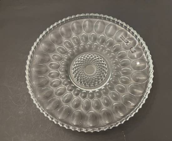 Decorative glass serving tray dish New Measures 12" in diameter. Brand new in box never used Asking $15