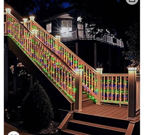 Eueasy Christmas Outdoor Fence Lights, 15×3.3 FT Guardrail Lights with Timer, 300 LED Fairy Lights 8 Lighting Modes, Connectable LED Lights for Stairs, Balconies, Fences(Multi Color), New