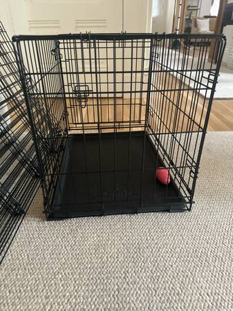 I have 2 medium dog crates that our pup has already outgrown. EveryYay brand. Includes the tray. Been thoroughly cleaned. $40 for both or $25 each.