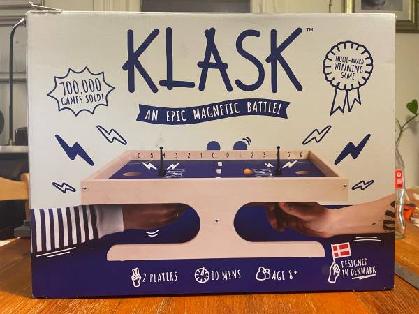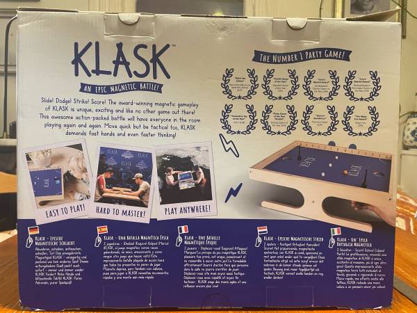 Klask Tabletop Magnetic Board Game - This game is brand new, in its original box in perfect condition. It was purchased for $60, selling for $20. Klask has been described as a combination of air...