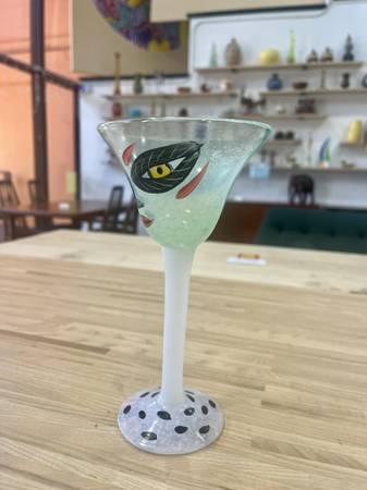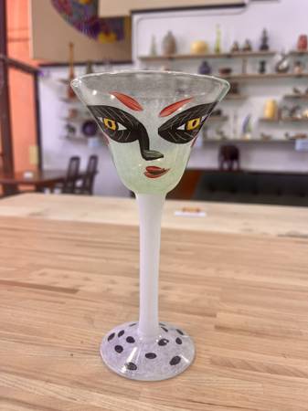 Kosta Boda Ulrica Hydman-Vallien Hand-Painted "Open Minds" Goblet 2 Goblets Available, Sold Individually. Price listed is for 1 goblet Measurements: 7.25”H