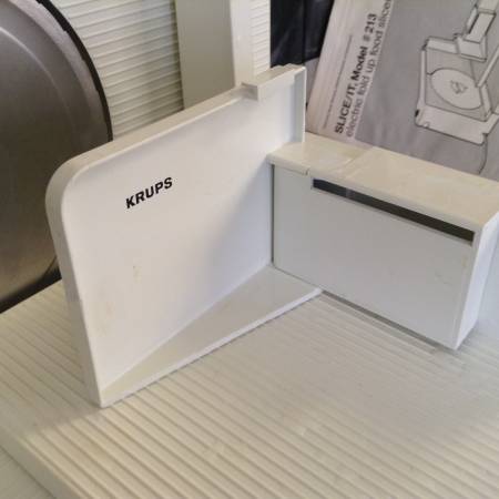 Krups Compact slicer in excellent condition.. All perfect ! Fold up electric food slicer with Krups Unique stainless steel cutting blade
